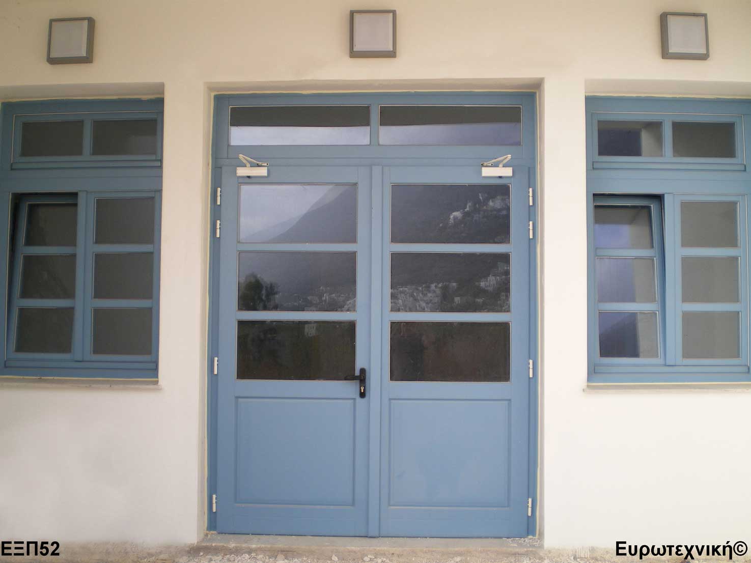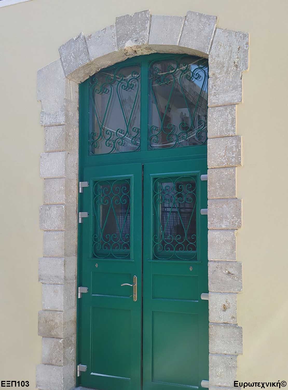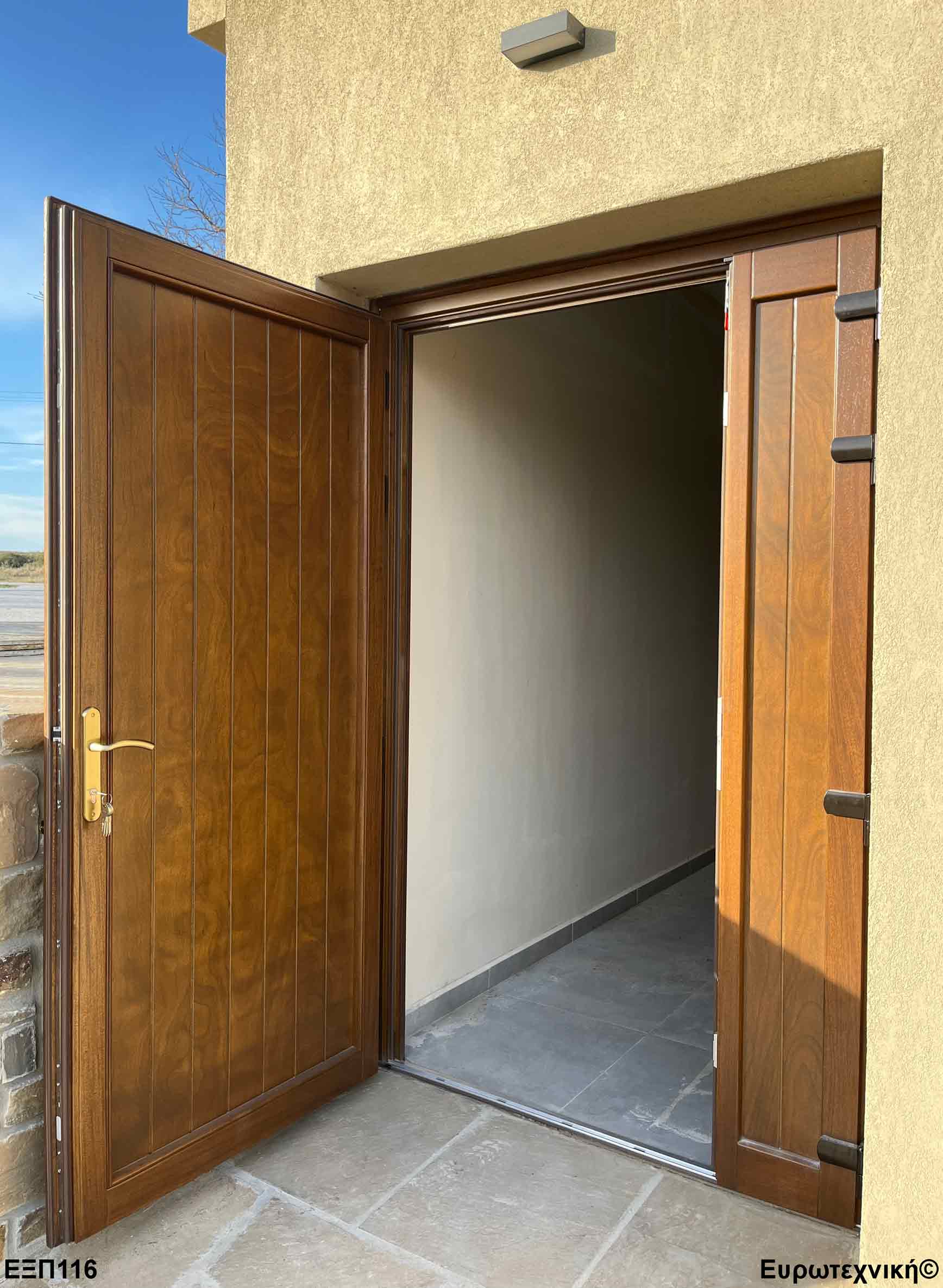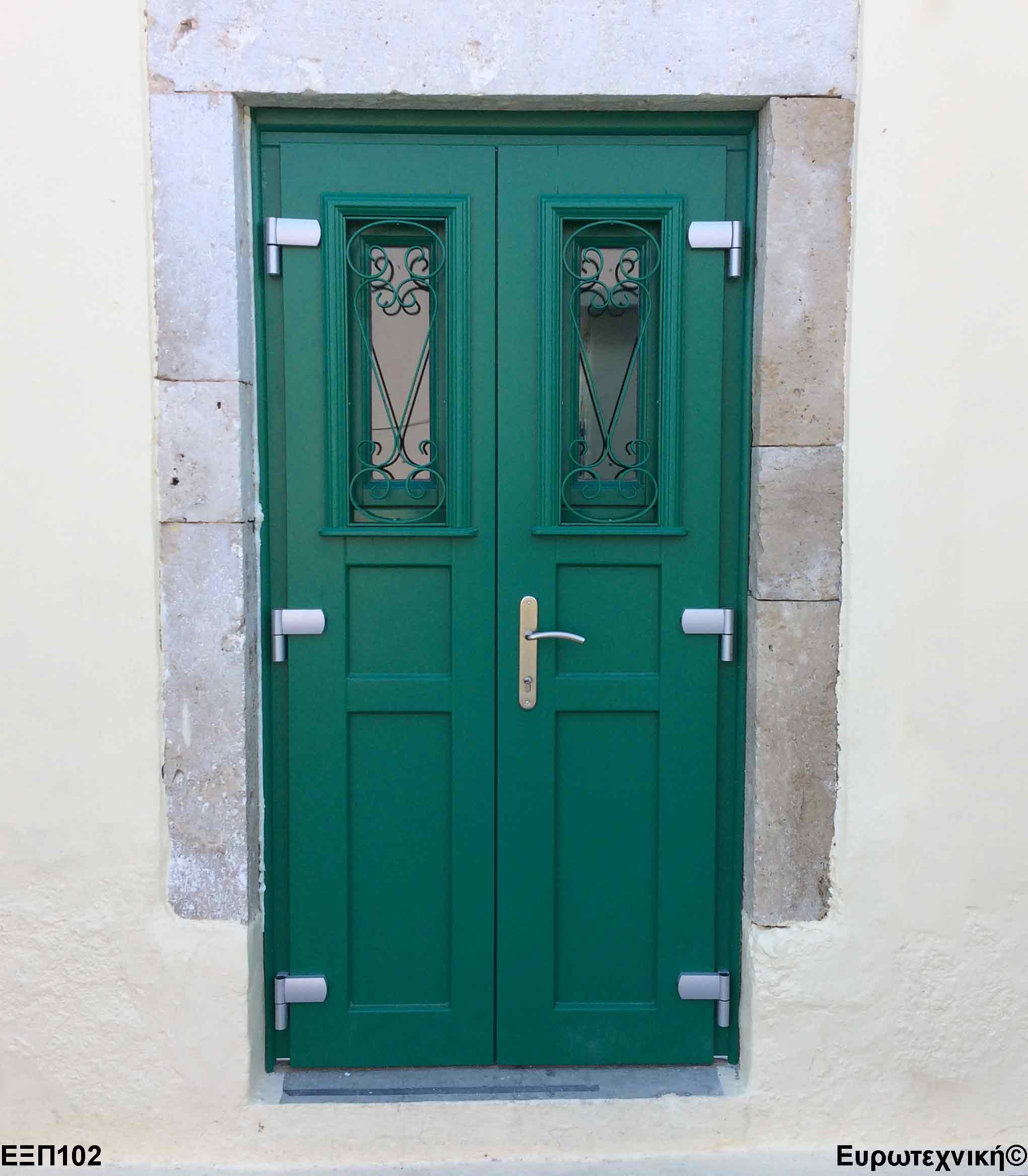 Οι μηχανισμοί που εξοπλίζουν τις κεντρικές εισόδους είναι γερμανικοί των εταιριών SIEGENIA-AUBI και Rotto. Το φύλλο διαθέτει ενιαίο μεταλλικό μηχανισμό στο εμπρός κατακόρυφο. Το κλείδωμα γίνεται με αφαλό ασφαλείας και δύο εσωτερικούς πύρους. Η κάσα διαθέτει ενιαίο μεταλλικό μηχανισμό στο εμπρός κατακόρυφο με τα αντίστοιχα αντικρίσματα. Στις κεντρικές εισόδους χρησιμοποιείται κατωκάσι αλουμινίου.