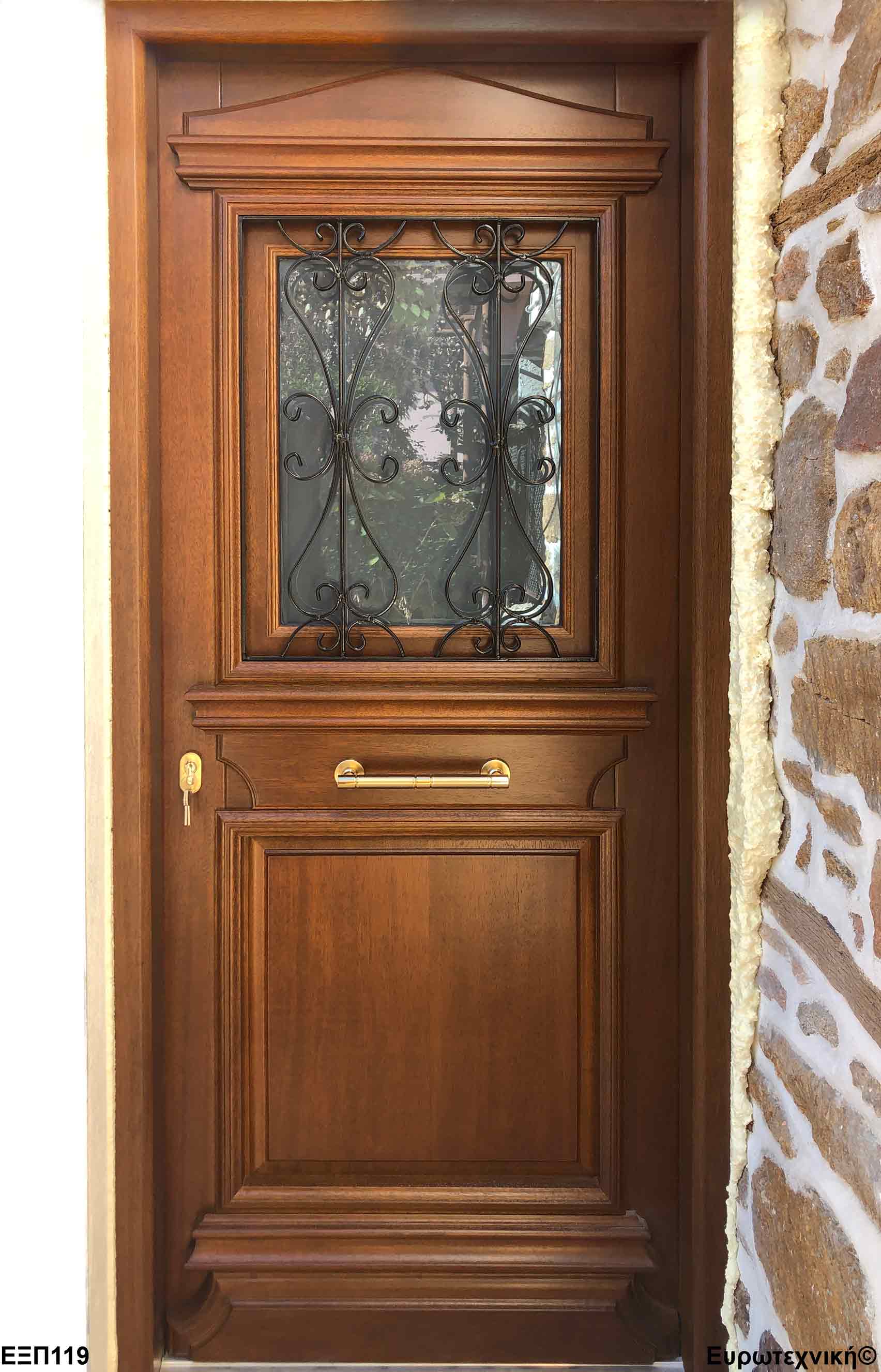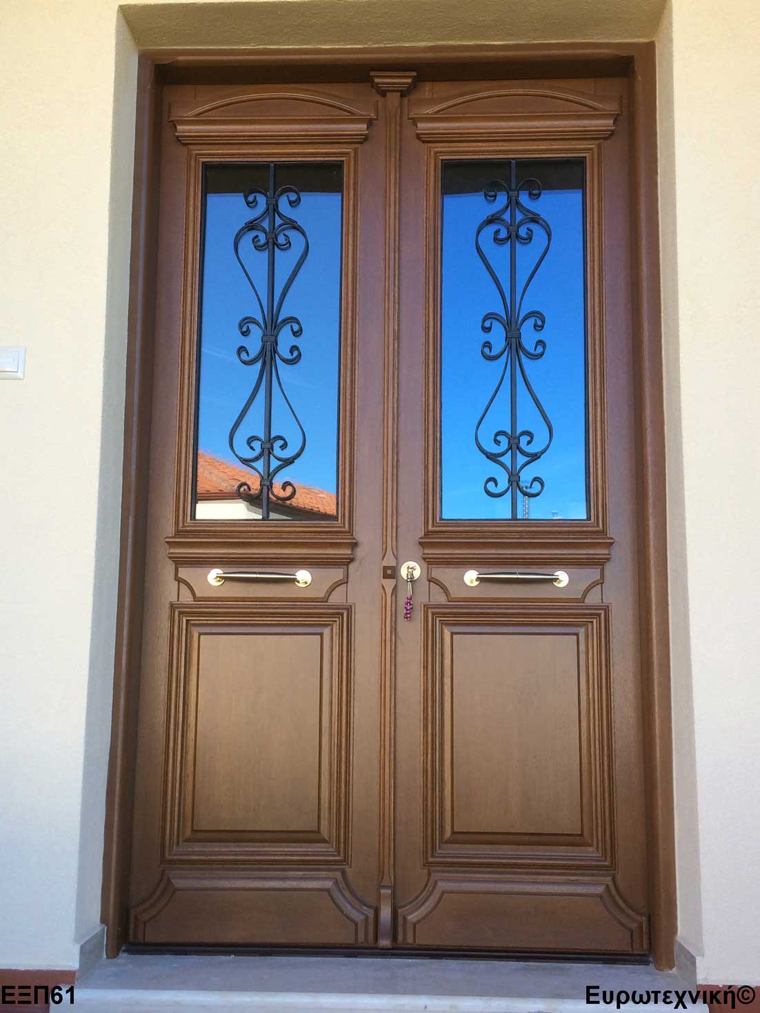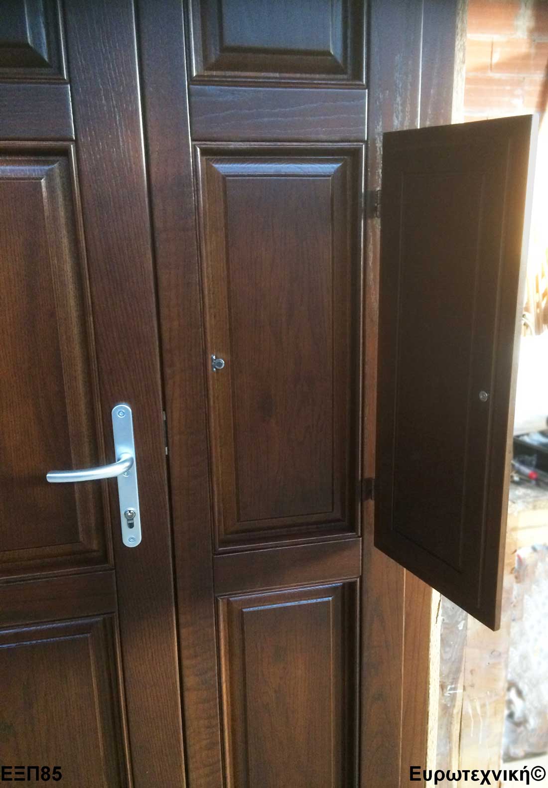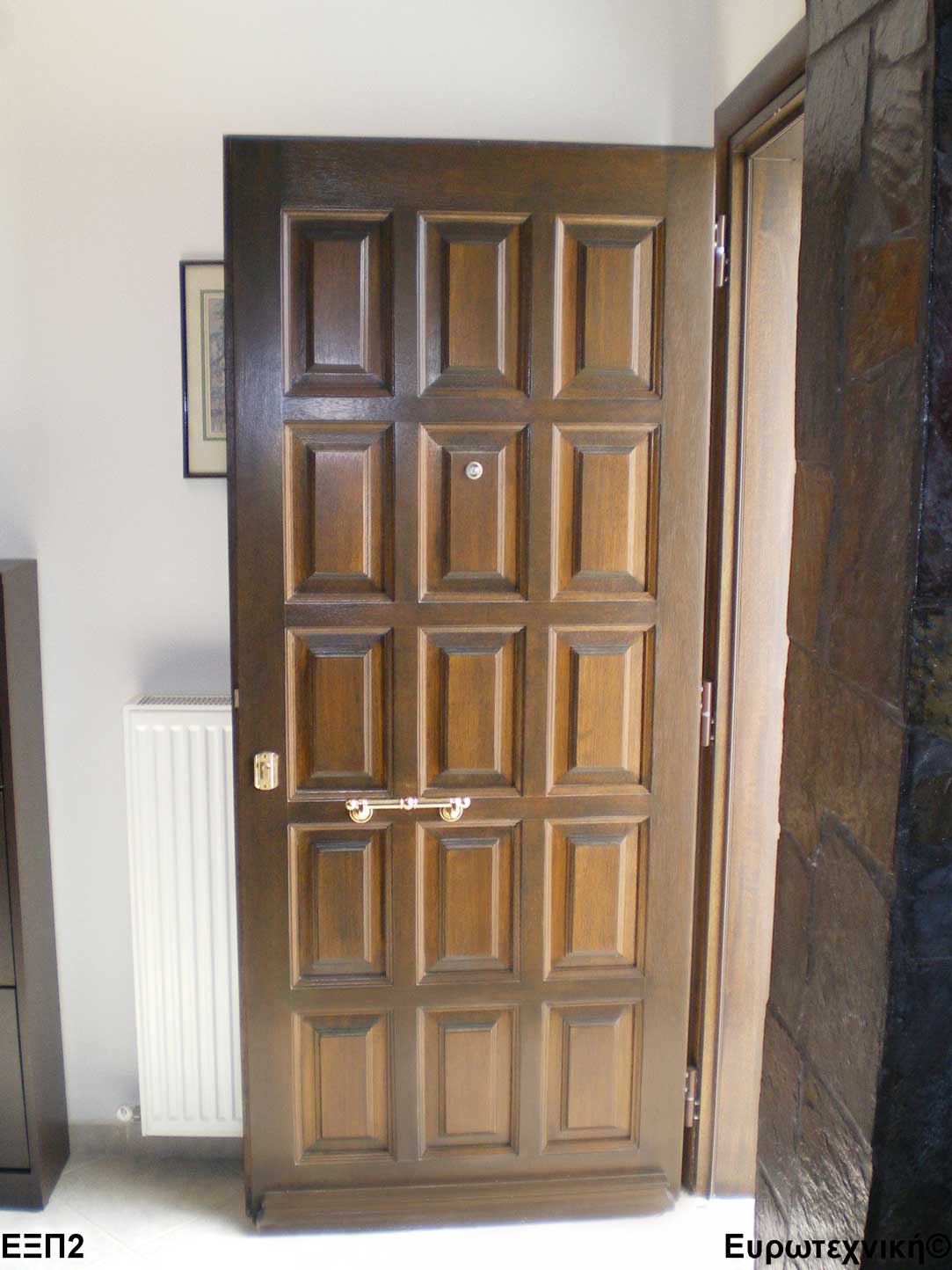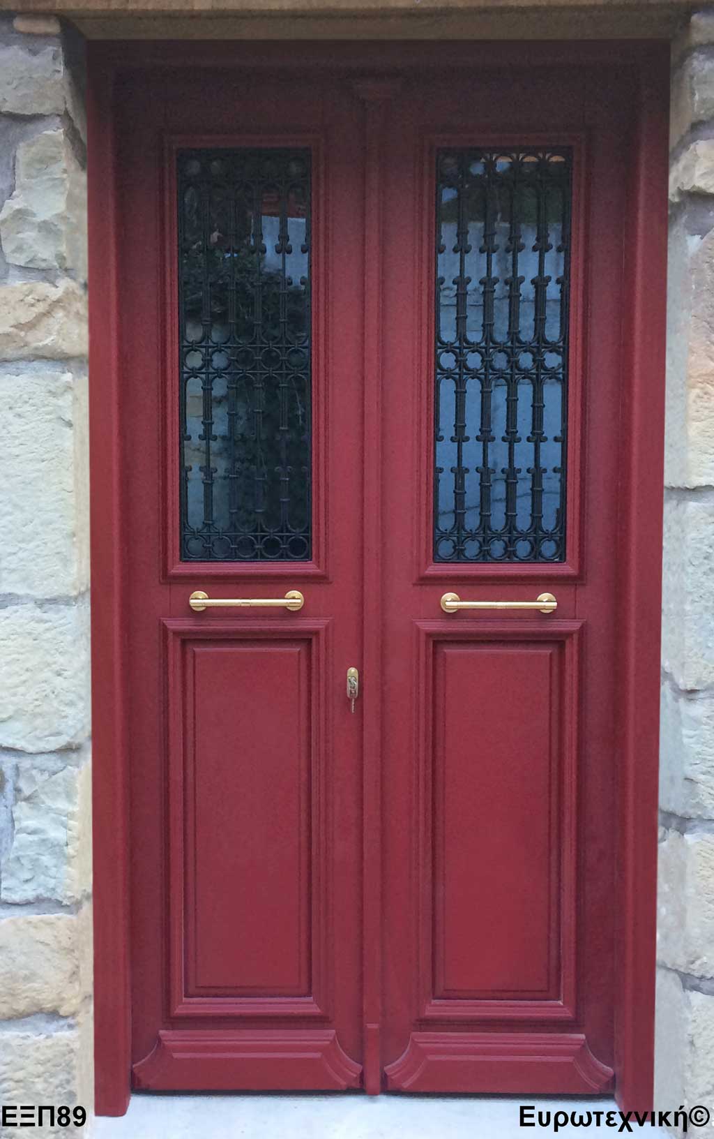 Οι μηχανισμοί που εξοπλίζουν τις κεντρικές εισόδους είναι γερμανικοί των εταιριών SIEGENIA-AUBI και Rotto. Το φύλλο διαθέτει ενιαίο μεταλλικό μηχανισμό στο εμπρός κατακόρυφο. Το κλείδωμα γίνεται με αφαλό ασφαλείας και δύο εσωτερικούς πύρους. Η κάσα διαθέτει ενιαίο μεταλλικό μηχανισμό στο εμπρός κατακόρυφο με τα αντίστοιχα αντικρίσματα. Στις κεντρικές εισόδους χρησιμοποιείται κατωκάσι αλουμινίου.