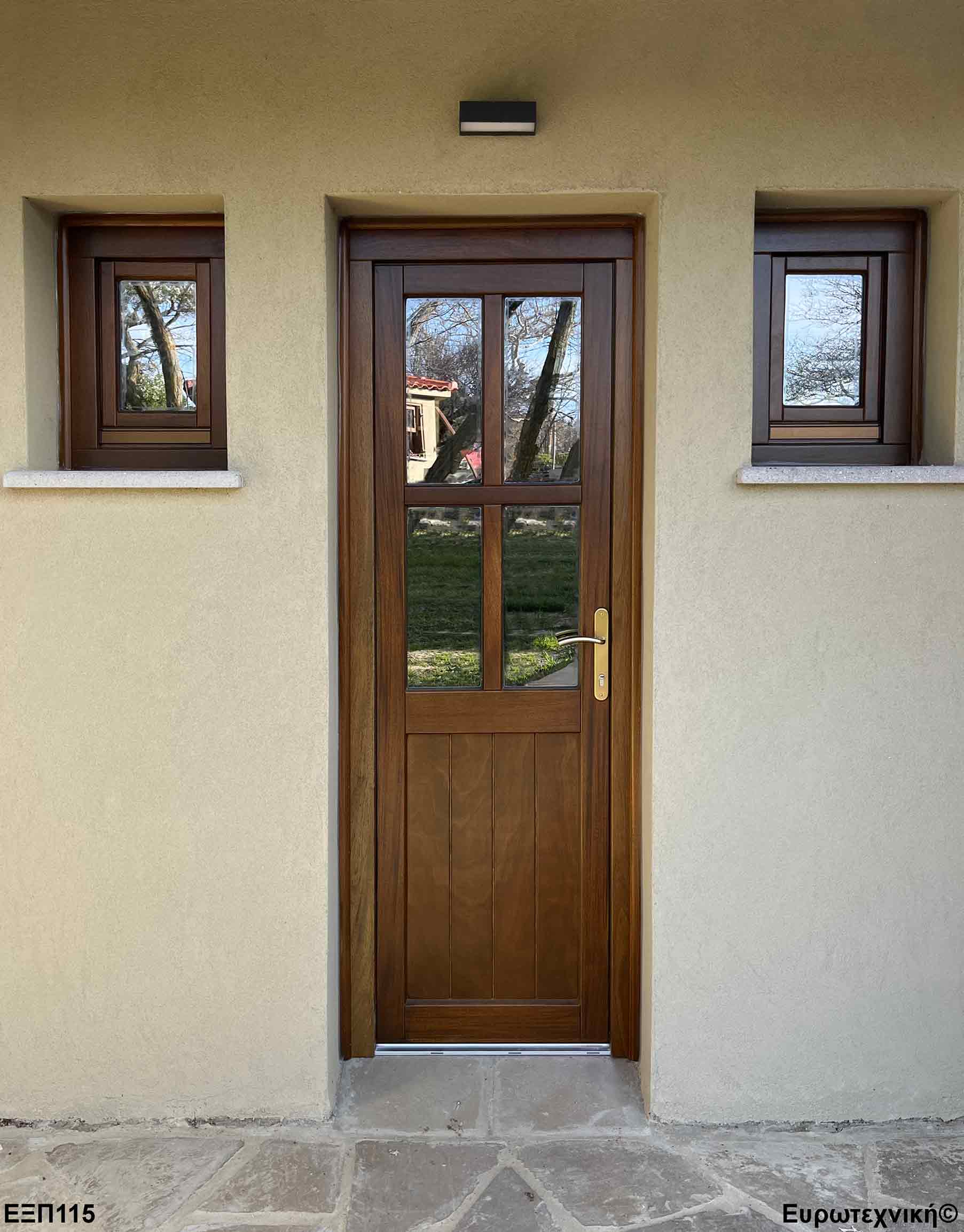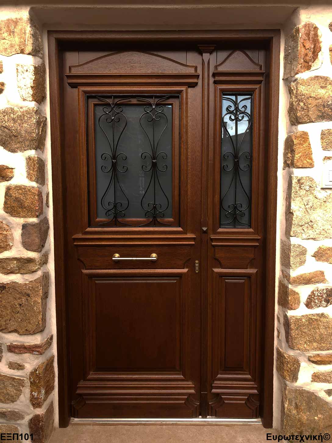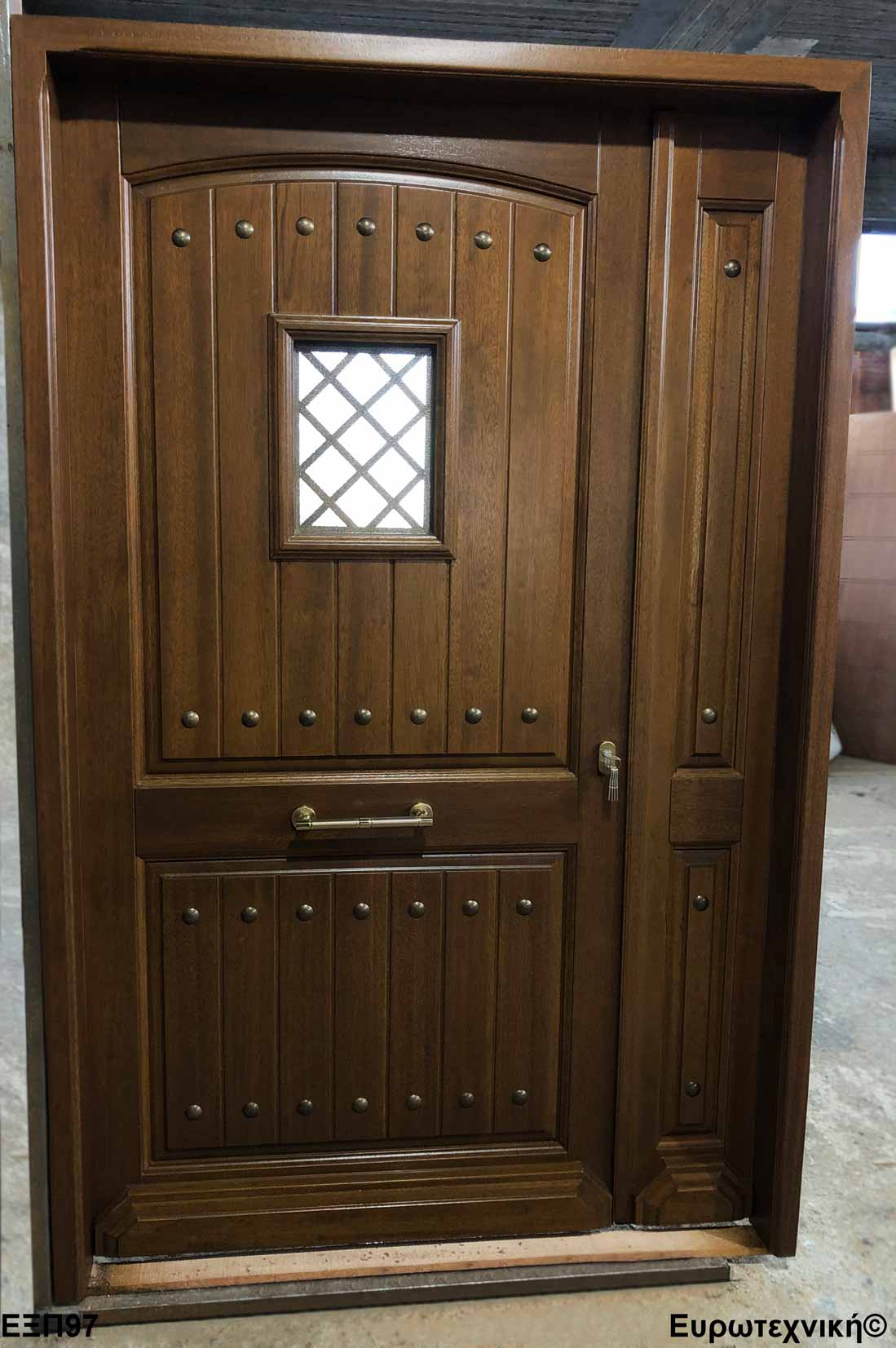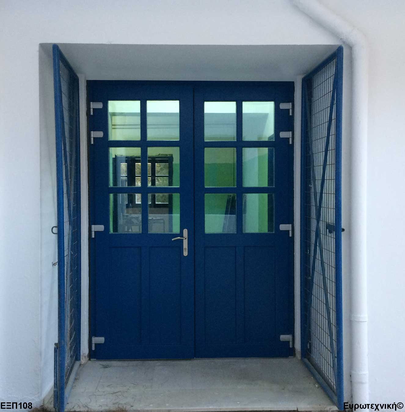 Οι μηχανισμοί που εξοπλίζουν τις κεντρικές εισόδους είναι γερμανικοί των εταιριών SIEGENIA-AUBI και Rotto. Το φύλλο διαθέτει ενιαίο μεταλλικό μηχανισμό στο εμπρός κατακόρυφο. Το κλείδωμα γίνεται με αφαλό ασφαλείας και δύο εσωτερικούς πύρους. Η κάσα διαθέτει ενιαίο μεταλλικό μηχανισμό στο εμπρός κατακόρυφο με τα αντίστοιχα αντικρίσματα. Στις κεντρικές εισόδους χρησιμοποιείται κατωκάσι αλουμινίου.