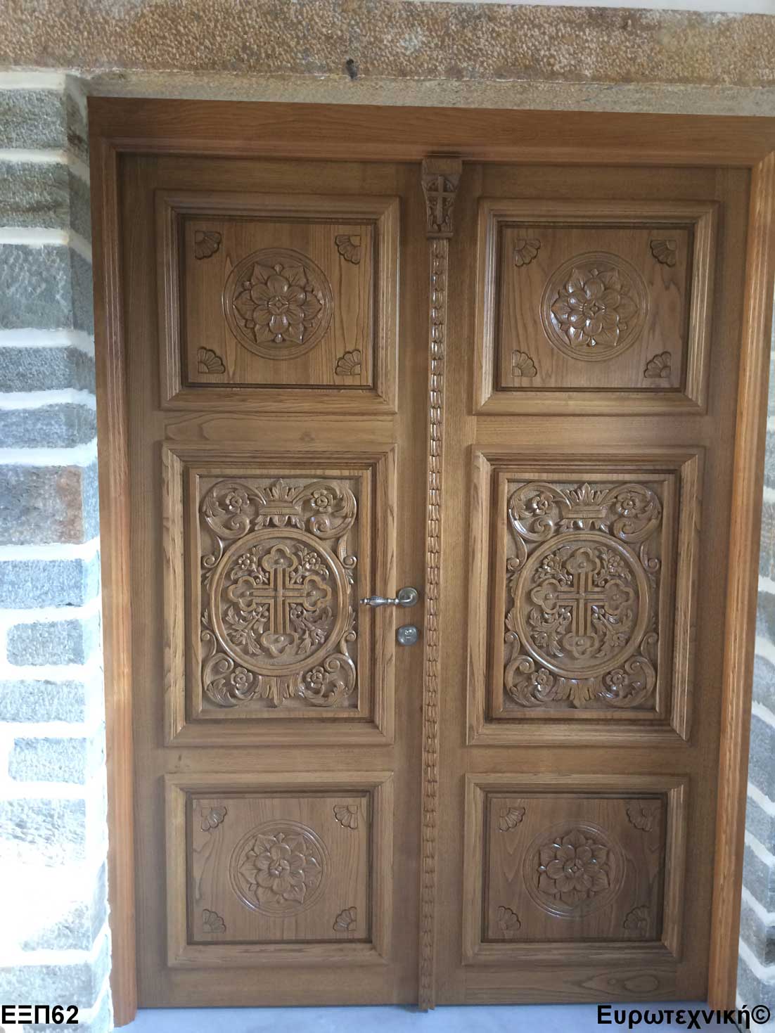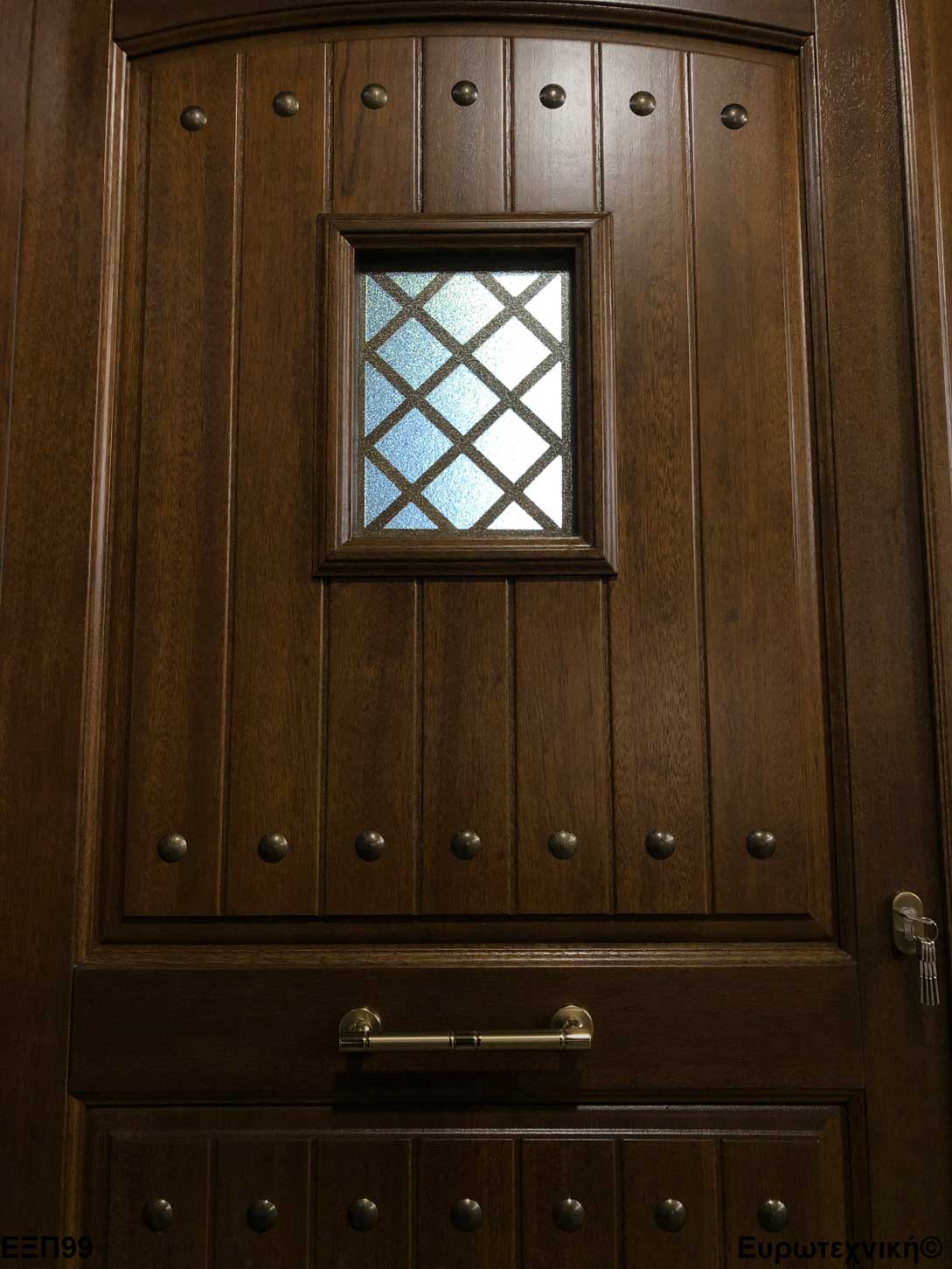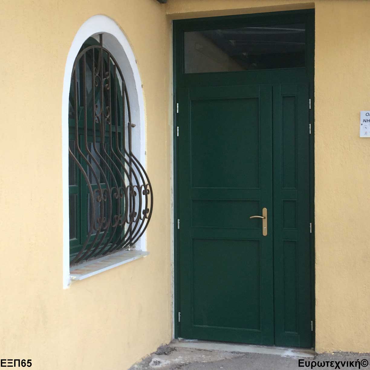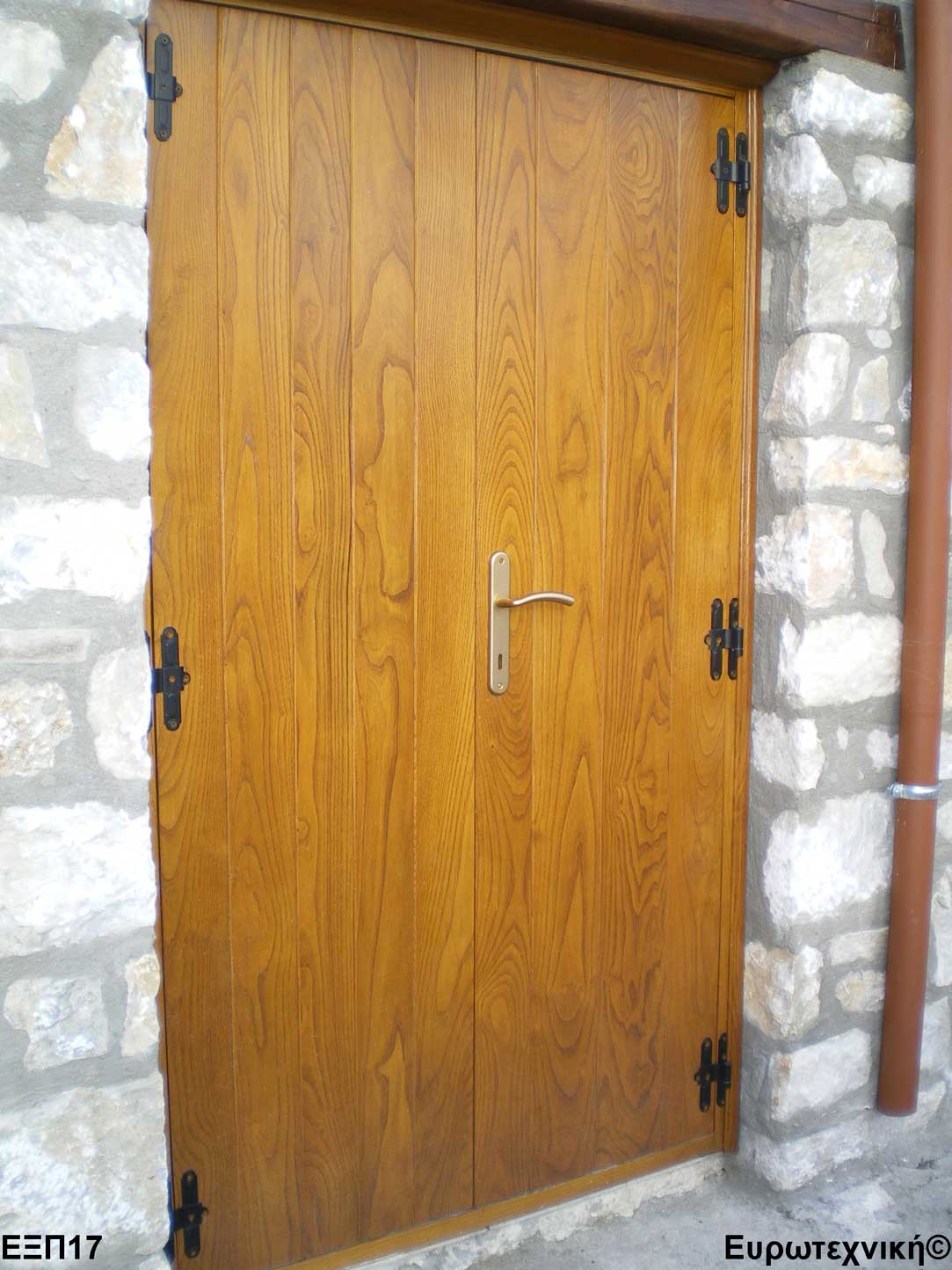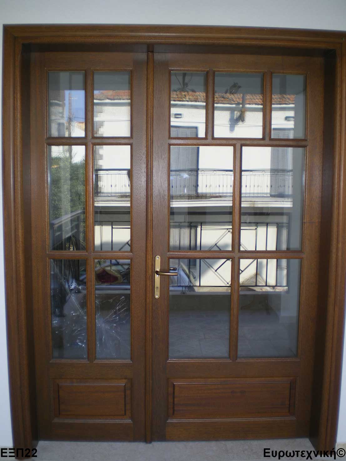 Οι μηχανισμοί που εξοπλίζουν τις κεντρικές εισόδους είναι γερμανικοί των εταιριών SIEGENIA-AUBI και Rotto. Το φύλλο διαθέτει ενιαίο μεταλλικό μηχανισμό στο εμπρός κατακόρυφο. Το κλείδωμα γίνεται με αφαλό ασφαλείας και δύο εσωτερικούς πύρους. Η κάσα διαθέτει ενιαίο μεταλλικό μηχανισμό στο εμπρός κατακόρυφο με τα αντίστοιχα αντικρίσματα. Στις κεντρικές εισόδους χρησιμοποιείται κατωκάσι αλουμινίου.