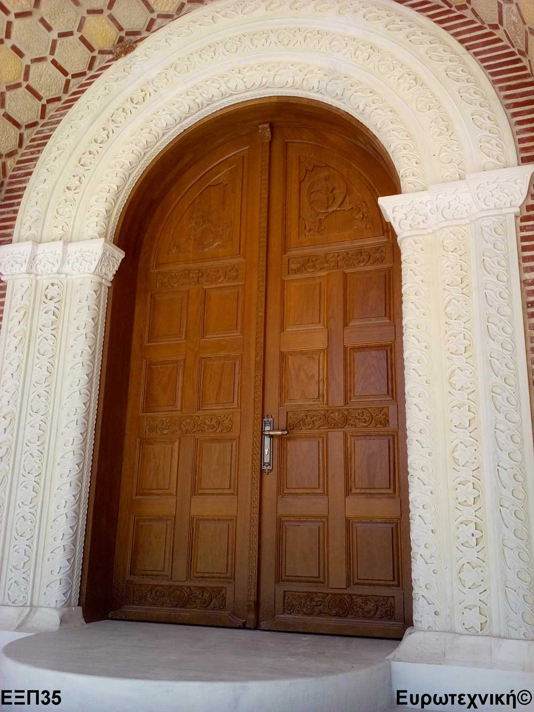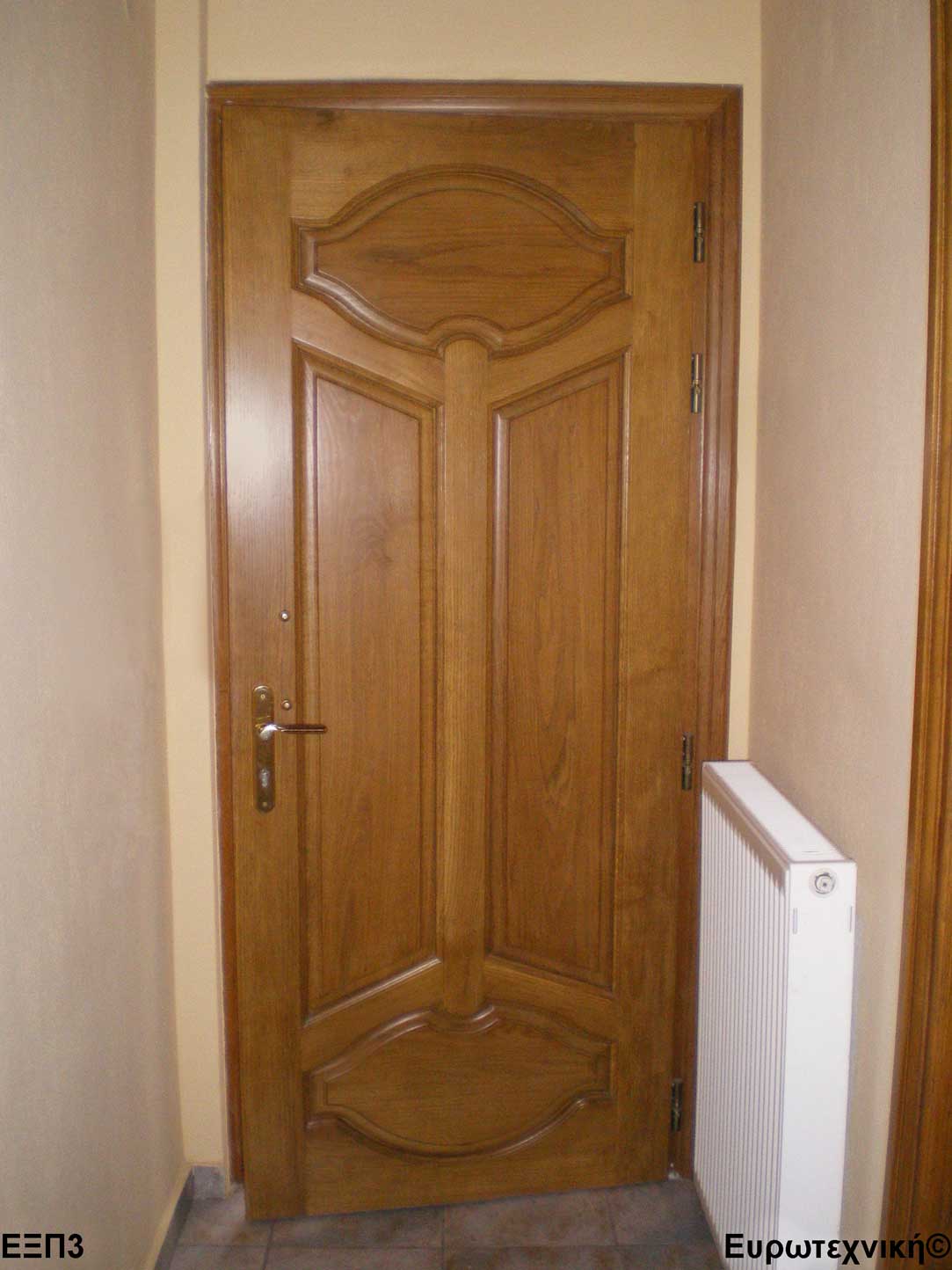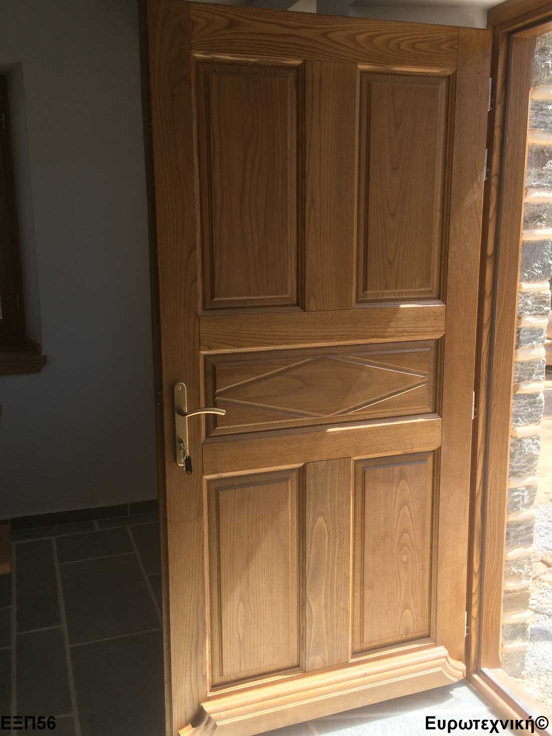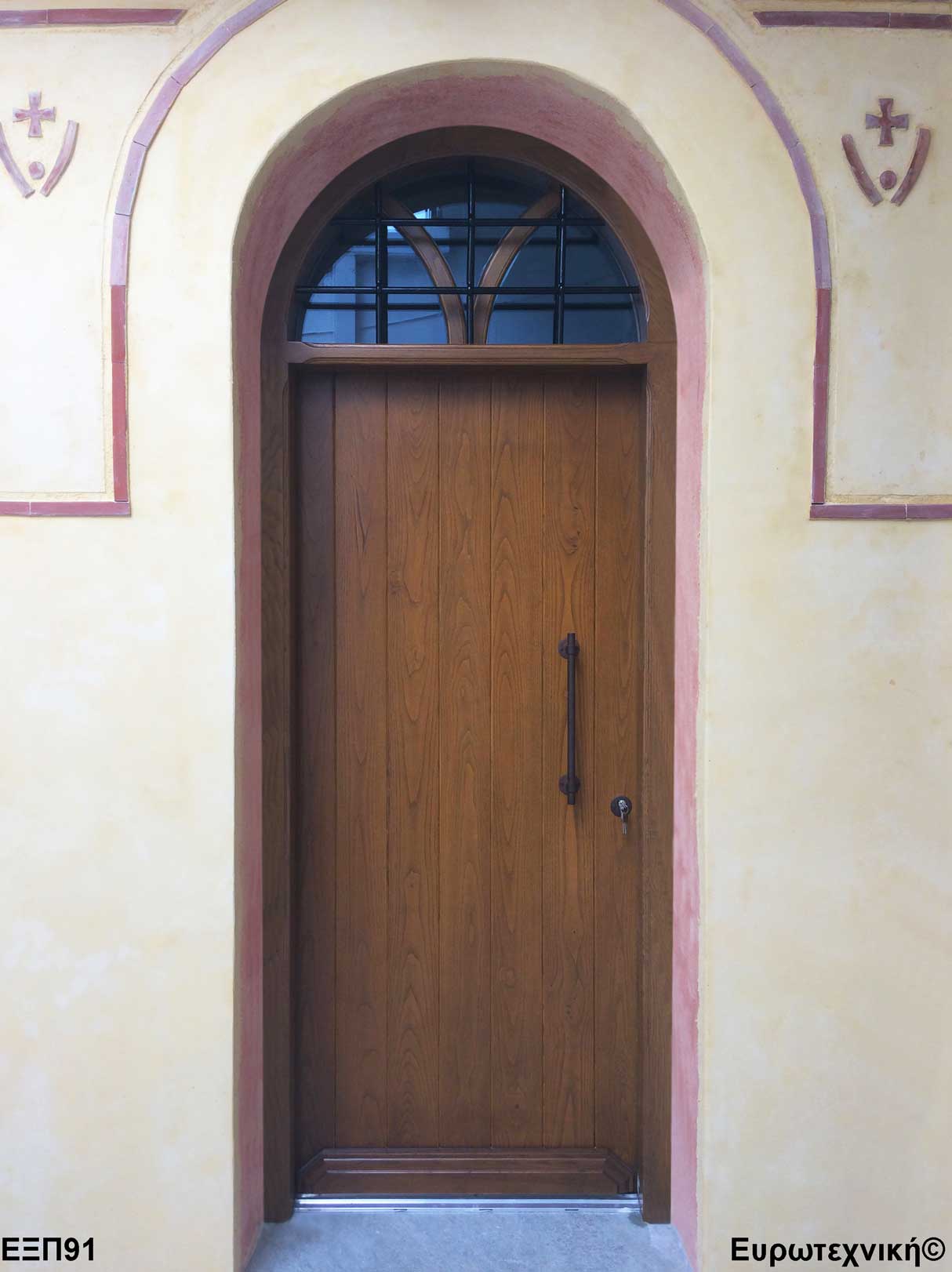 Οι μηχανισμοί που εξοπλίζουν τις κεντρικές εισόδους είναι γερμανικοί των εταιριών SIEGENIA-AUBI και Rotto. Το φύλλο διαθέτει ενιαίο μεταλλικό μηχανισμό στο εμπρός κατακόρυφο. Το κλείδωμα γίνεται με αφαλό ασφαλείας και δύο εσωτερικούς πύρους. Η κάσα διαθέτει ενιαίο μεταλλικό μηχανισμό στο εμπρός κατακόρυφο με τα αντίστοιχα αντικρίσματα. Στις κεντρικές εισόδους χρησιμοποιείται κατωκάσι αλουμινίου.